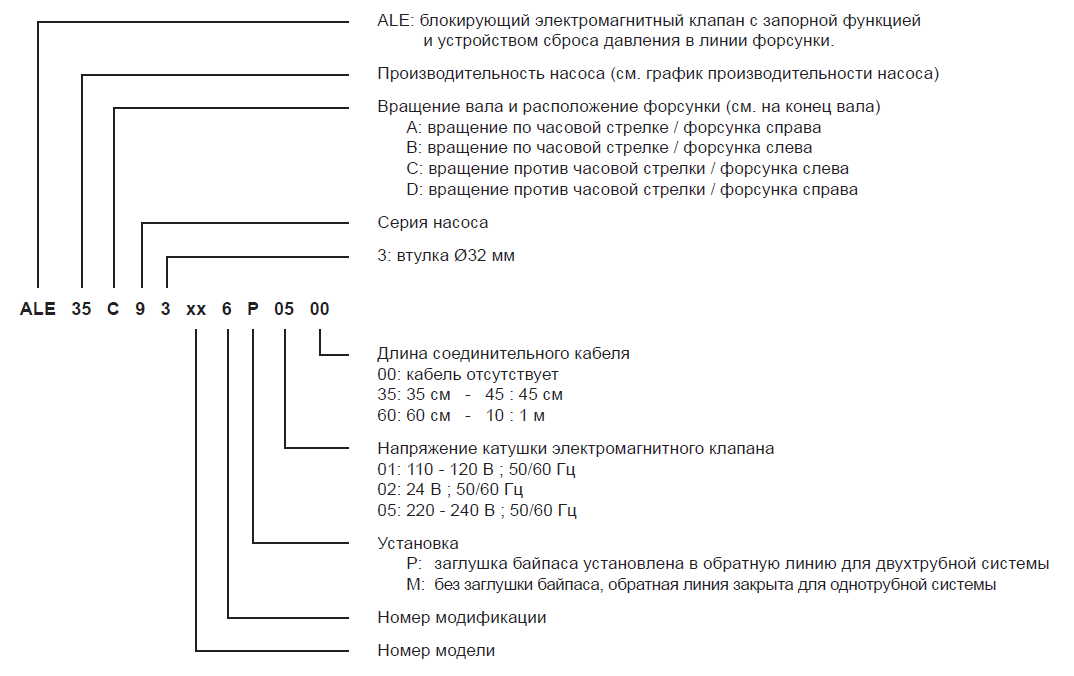 Электромагнитный клапан насоса ALE — «нормально закрытого» типа, расположен в форсуночной линии.